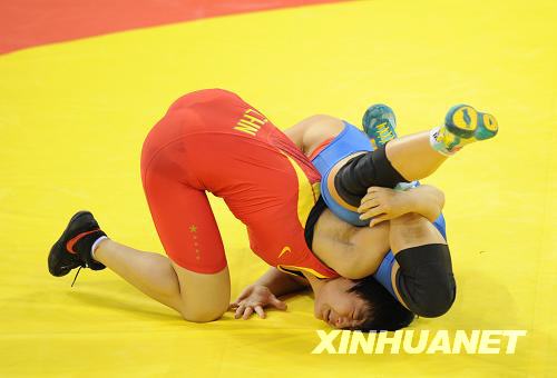 8月17日,在中國農(nóng)業(yè)大學(xué)體育館舉行的北京奧運(yùn)會(huì)摔跤女子自由式72公斤級(jí)決賽中,中國選手王嬌(紅)戰(zhàn)勝保加利亞選手絲坦卡·茲拉特娃,奪得冠軍。新華社記者李鋼攝