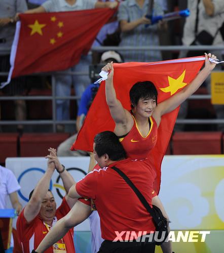8月17日,在中國農(nóng)業(yè)大學(xué)體育館舉行的北京奧運(yùn)會(huì)摔跤女子自由式72公斤級(jí)決賽中,中國選手王嬌戰(zhàn)勝保加利亞選手絲坦卡·茲拉特娃,奪得冠軍。這是王嬌獲勝后慶祝。新華社記者李鋼攝