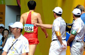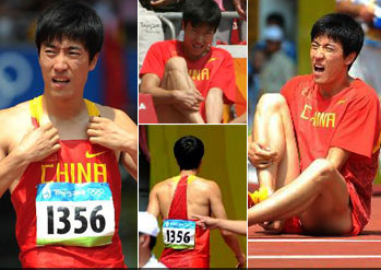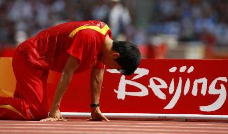 劉翔遺憾退賽心情低落 坐在地上