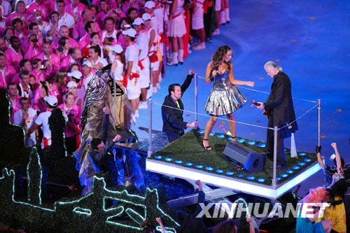 8月24日晚,第29屆夏季奧林匹克運(yùn)動(dòng)會(huì)閉幕式在北京國(guó)家體育場(chǎng)——“鳥巢”舉行。這是英國(guó)歌手利昂娜·劉易斯(右二)在倫敦巴士上演唱。新華社記者郭大岳攝