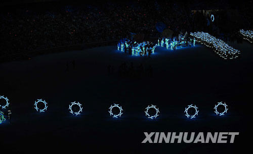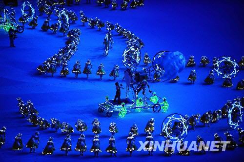 8月24日晚,第29屆夏季奧林匹克運(yùn)動(dòng)會(huì)閉幕式在北京國(guó)家體育場(chǎng)——“鳥(niǎo)巢”舉行。這是閉幕式上的表演。 新華社記者郭大岳攝 |