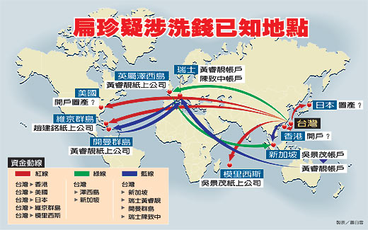 臺媒曝陳水扁家洗錢路線圖 (臺灣聯(lián)合報(bào)圖) 中新網(wǎng)8月30日電 據(jù)臺灣《聯(lián)合報(bào)》報(bào)道,臺灣“最高檢“特偵組追查陳水扁家庭海外密帳,發(fā)現(xiàn)陳水扁家的資金,曾在臺灣以外至少四大洲的十個國家或地區(qū)流轉(zhuǎn),包括被視為洗錢天堂的英屬開曼群島、澤西島等地,金額疑超過十億元(新臺幣,下同);檢方認(rèn)為陳水扁家在日本、美國也有資產(chǎn),正過濾、查證相關(guān)情資。 隨著越來越多扁家海外資金訊息曝光,陳水扁、吳淑珍辯稱瑞士的兩千一百萬美元是四次選舉結(jié)余款,以及全都由吳淑珍一人掌控,只用哥哥吳景茂、媳婦黃睿靚兩個人頭戶的說法,檢方認(rèn)為并非實(shí)情。 特偵組追查扁家海外賬戶,發(fā)現(xiàn)除了新加坡匯到瑞士的兩千一百萬美元、澤西島匯到新加坡的一千五百多萬美元,扁家在日本、美國、甚至香港等地也可能有密帳,甚至置產(chǎn)等,未曝光金額可能更驚人。 檢方發(fā)現(xiàn)二00六年底扁家海外密帳情資首度被通報(bào)傳回臺灣內(nèi)后,陳致中就頻繁赴日本,加上許多情資顯示扁家與日本關(guān)系密切,特偵組最近鎖定吳淑珍人頭戶追查相關(guān)資金進(jìn)入日本后的流向,希望進(jìn)一步取得扁家涉嫌洗錢的證據(jù)。 對于海外資金,扁家如今口徑一致說瑞士的七億元是選舉結(jié)余款,不過到目前為止沒有任何證據(jù)可以左證。辦案人員形容扁家的說法“漏洞百出”;而且吳景茂聲稱只替吳淑珍從臺灣匯出七千萬元到新加坡,其余資金是否從臺灣匯出,也很可疑。 至于澤西島的一千五百多萬美元,經(jīng)查后來輾轉(zhuǎn)進(jìn)入新加坡,但澤西島的資金來源從何而來,特偵組正循司法互助積極厘清。 陳水扁于七月二十四日為“國務(wù)機(jī)要費(fèi)“案赴特偵組應(yīng)訊時(shí),因陳水扁表示身體不適無法久坐,檢察官還有許多疑點(diǎn)未問,檢方對陳水扁發(fā)出傳票,原本要求他今天再度到案說明。 不過,由于綠營的830游行路線今天會經(jīng)過特偵組門口,昨天更有人刻意在電視政論節(jié)目中放出陳水扁將出庭應(yīng)訊的消息,特偵組基于維安考慮,昨晚緊急通知陳水扁取消今天的傳訊。 |
