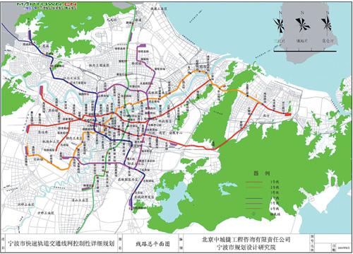 根據(jù)此前已獲批復(fù)的《寧波市城市總體規(guī)劃(2006~2020)》規(guī)定內(nèi)容,其中有關(guān)寧波市軌道交通線網(wǎng)是以三江片為核心,以跨三江、連三片、沿三軸為指導(dǎo)思想構(gòu)成的三主三輔六條線、放射狀的軌道交通線網(wǎng),全長(zhǎng)247.5公里。
