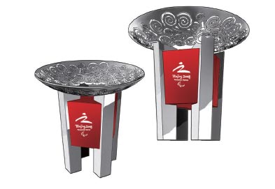 圣火盆的設(shè)計(jì)以中國(guó)傳統(tǒng)的“鼎”和北京殘奧會(huì)核心圖形“祥云”為設(shè)計(jì)元素