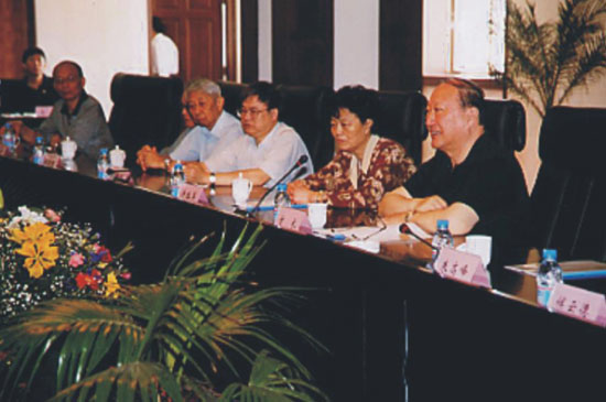 2003年9月28日,原全國政協(xié)副主席徐匡迪(右一)考察大榭