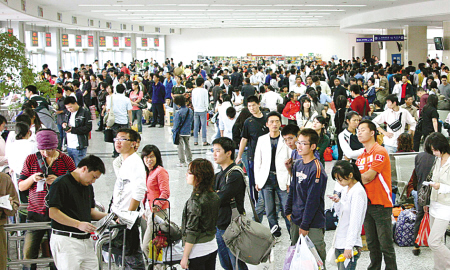昨天下午,寧波汽車中心站候車大廳旅客如潮。據(jù)介紹,截至下午5時(shí),該車站已發(fā)送旅客2.15萬(wàn)人次,比去年同期增長(zhǎng)25%。(胡建華 李 韜 王曲晶 攝)