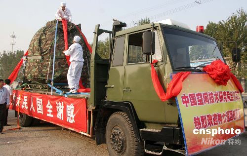 神七載人飛船返回艙運(yùn)抵北京 10月1日開(kāi)艙(圖) |