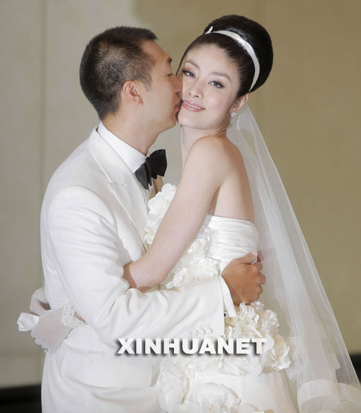 10月2日,新郎劉建浩親吻新娘陳慧琳。新華社記者 周磊 攝
