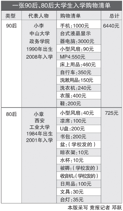 除此之外,MP4、i-Phone手機(jī)、PSP、名牌籃球鞋……還有很多學(xué)生帶著這樣一大堆令人眼花繚亂的裝備走入校園。