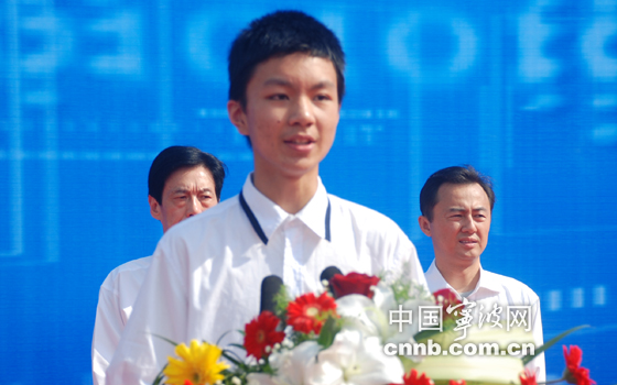 寧波市首屆網(wǎng)絡(luò)文化節(jié)開幕現(xiàn)場,學(xué)生代表發(fā)表倡議書。