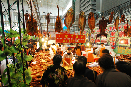 誘人的重慶風味。孫曉青攝 人民網寧波11月9日電 (記者陳偉光、孫曉青) 2007中國食品博覽會今天在寧波舉行。據(jù)組委會介紹,寧波在連續(xù)三年成為食博會東道主的今天,首次實現(xiàn)了全國各省市區(qū)食品產業(yè)的“大團圓”。據(jù)商務部有關負責人介紹,食博會是商務部在內貿領域重點培育的品牌展會和在全國范圍舉辦的重大商務活動之一,是商務部重點打造的海內外影響大、競爭力強、發(fā)展前景好的精品會展之一。本屆食博會以“食品安全與行業(yè)和諧發(fā)展”為主題,突出人文、安全、創(chuàng)新、品牌、共贏、開放的辦展理念。展會展出面積達到6萬平方米,國際標準展位超過2500個,參展企業(yè)超過1800家,展示食品3萬余種。其中,75%以上的參展食品擁有各類馳名、著名、知名商標,“中華老字號”企業(yè)有200多家,有30多個民族的特色食品將與市民見面。食博會將安排20多項經貿活動,沃爾瑪、家樂福、麥德龍、大潤發(fā)、華潤萬家等海內外大型跨國公司采購團參加食博會。 美國、英國、德國、法國、日本、韓國等20多個國家和地區(qū)的客商也將前來參展或采購,海內外參展客商有望達10萬余名,與會人數(shù)預計超過30萬人次。 為期四天的2007中國食品博覽會由商務部和浙江省人民政府主辦,國家發(fā)展和改革委員會、科技部、農業(yè)部、食品藥品監(jiān)督管理局支持,寧波市人民政府等承辦。