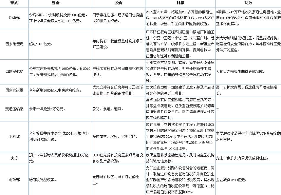 國務院出臺擴大內(nèi)需十措施確定4萬億元投資計劃