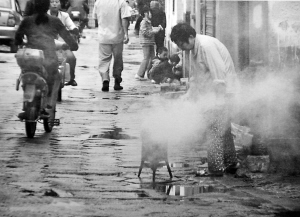 當年市民用煤餅爐生火做飯(資料圖片)。記者 劉波 翻拍