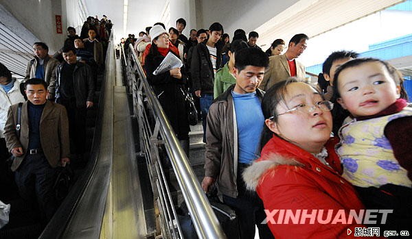 根據(jù)鐵道部已經(jīng)出臺(tái)的2009年全國(guó)鐵路春運(yùn)方案,2009年春運(yùn)自1月11日起至2月19日止,為期40天,其中,節(jié)前15天,節(jié)后25天。新華社發(fā)(鈕一新 攝)
