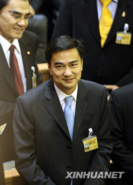 12月15日,在泰國首都曼谷的國會大廈內(nèi),泰國民主黨主席阿披實當選總理后面露笑容。新華社記者牛曉雷攝