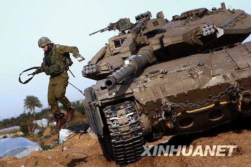 1月15日,在加沙地帶北部,一名以軍士兵從坦克上跳下。以色列對(duì)加沙地帶發(fā)動(dòng)的“鑄鉛行動(dòng)”當(dāng)日進(jìn)入第20天,以軍開(kāi)始向加沙城中心推進(jìn)。目前“鑄鉛行動(dòng)”已造成至少1079人死亡,超過(guò)5000人受傷。新華社發(fā)(邁赫迪·勒布阿切拉攝)