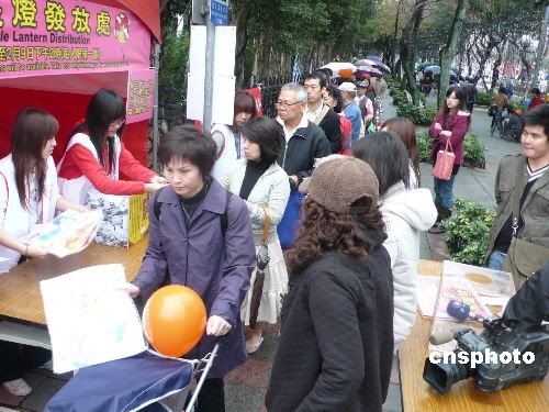 臺(tái)灣民眾領(lǐng)取元宵小提燈 |