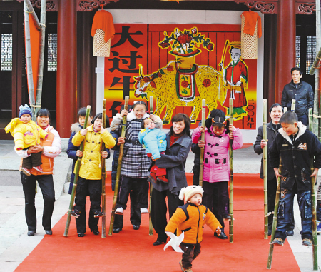 昨天,在慈城城隍廟參觀的游客興致勃勃地體驗(yàn)了一回踩高蹺。 元宵節(jié)將至,慈城旅游開(kāi)發(fā)公司推出傳統(tǒng)民俗鬧元宵活動(dòng)。在民間藝人的幫教下,游人可參與做燈籠、踩高蹺、打陀螺、賽風(fēng)車(chē)等節(jié)目,給慈城古城增添了濃濃的中國(guó)年味。(記者 龔國(guó)榮) |