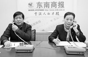 人大代表張逸平(左)、政協(xié)委員王益芬(右)在接聽(tīng)熱線。記者 王鵬 攝