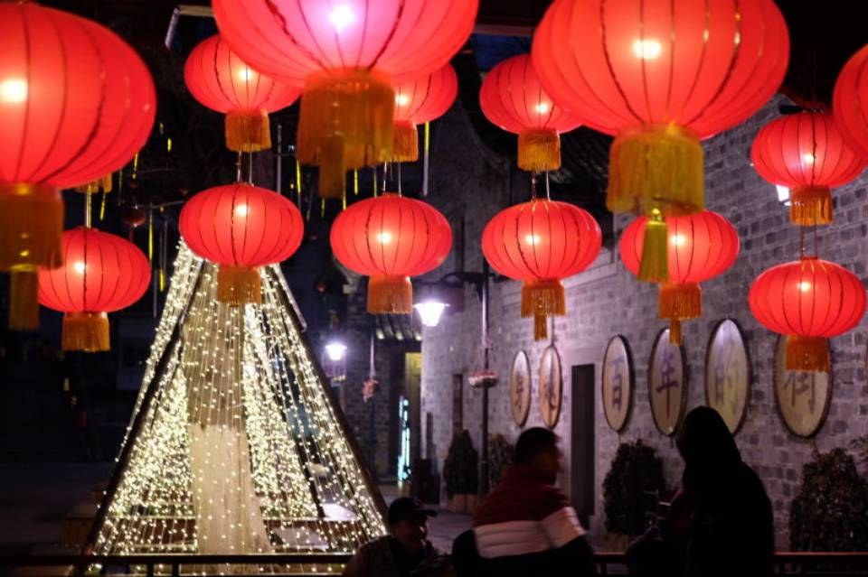 ↑↑↑南塘老街,大紅燈籠已經(jīng)掛起,燈籠墻布置完畢。