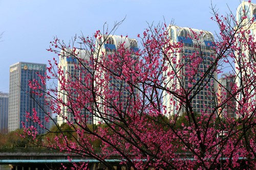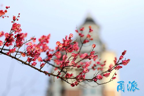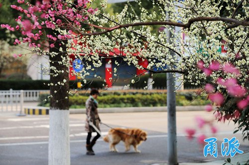 民安路紅梅綻放份外喜慶