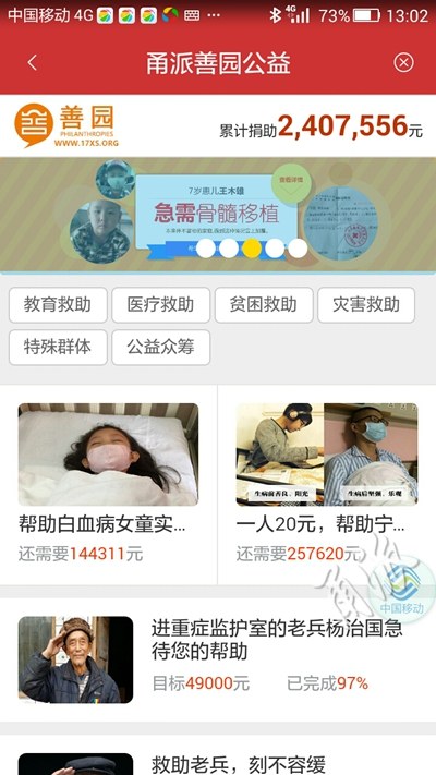 除了公益眾籌,還有教育救助、醫(yī)療救助、貧困救助等。