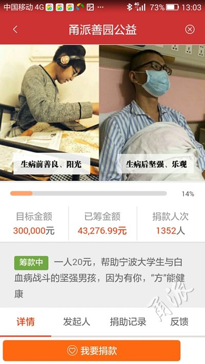 以目前正在進行的“幫助白血病女童實現(xiàn)她的上學夢”項目為例,點擊進入該項目,不但可以看到籌款目標金額,還可以看到已籌金額的數(shù)目和進度。在最下方有“我要捐款”,點擊便可以捐款了,捐款數(shù)目可以任意填寫。