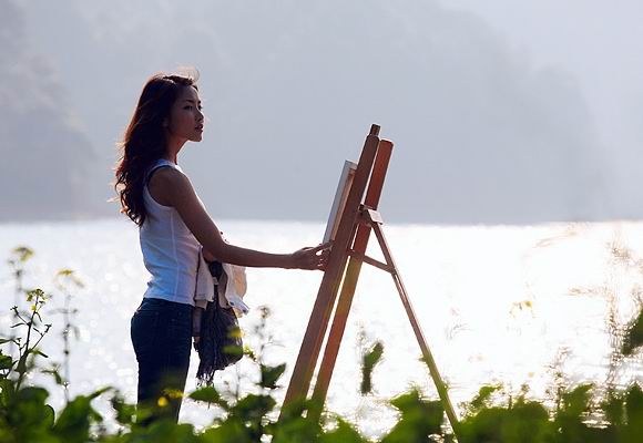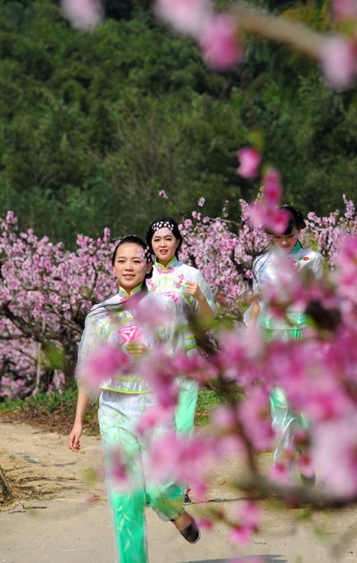 新建漫山的桃花,撐遠(yuǎn)了少女們頭頂上藍(lán)湛湛的天空,她們信步芳叢展一身虹裝,云胡不喜,奢華不求。