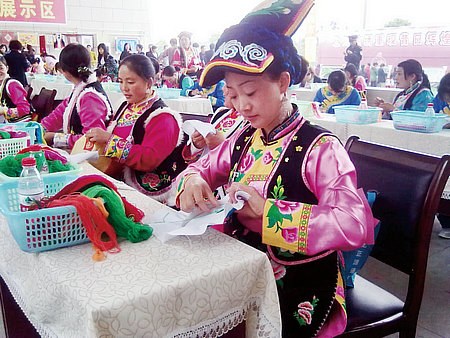 正值桃花爛漫時(shí),引得一群繡娘三五結(jié)伴來(lái)到新建村的世界桃街共繡桃花,陶醉在粉紅的花海,用絲線記錄別樣的春。