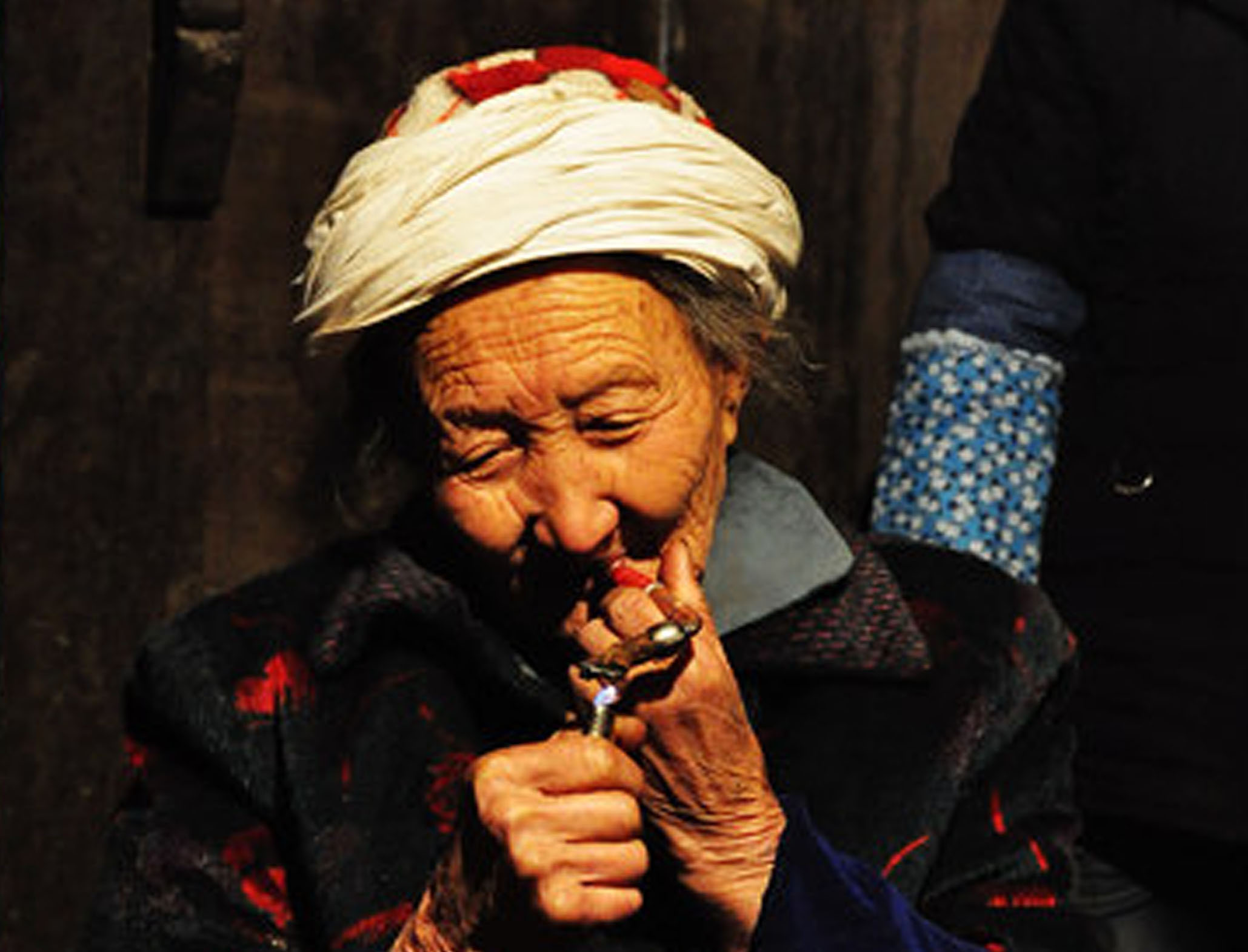曾祖母是抽煙的,但抽的不是煙袋,而是紙煙。有的時(shí)候,別人讓煙給她,她就接著,然后顫顫巍巍的點(diǎn)著抽上?此龏A煙、抽煙的動(dòng)作,雖說(shuō)不算麻利,但卻帶著幾分優(yōu)雅。我想,她應(yīng)該早就學(xué)會(huì)了抽煙,或許是民國(guó)時(shí)期,工作或生活的壓力讓她學(xué)會(huì)了點(diǎn)燃一支煙排遣郁悶。也或許,是曾祖父走的那一年,她點(diǎn)燃了一支煙,默默埋藏掛牽和思念,趕走了空寂的長(zhǎng)夜,迎來(lái)嶄新的明天。一個(gè)人的時(shí)候,她習(xí)慣站著點(diǎn)燃一支煙,眼睛靜靜的看著遠(yuǎn)方,啪嗒來(lái)上一口,然后慢慢的垂下手來(lái),食指、中指夾著香煙放在住著的拐杖上。有時(shí),或許她陷入了深深的沉思,抽上兩三口,就任那香煙自燃。直到那煙灰越燃越長(zhǎng),被風(fēng)兒吹落,只剩下了一個(gè)煙屁股,她都沒(méi)有察覺(jué)。等她再把煙放到嘴里吸的時(shí)候,方才意識(shí)到那只香煙已經(jīng)燃完。有時(shí),她會(huì)再燃上一根,接著延續(xù)靜靜的出神。有時(shí),她會(huì)一把丟掉煙屁股,快速的挪動(dòng)著小腳走開。