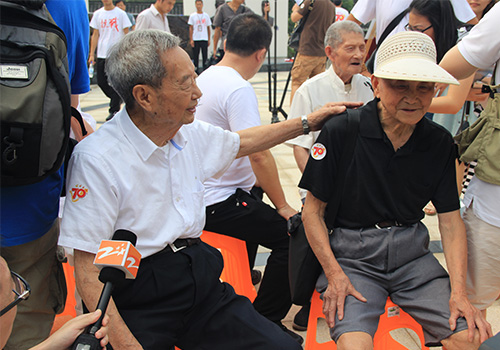 中國寧波網(wǎng)訊(記者 王塵 張錢鴻 周海芳 實習(xí)記者 潘楠希 李敬平)在浙東抗戰(zhàn)老兵紀(jì)念園開園儀式現(xiàn)場,不少目前健在的抗戰(zhàn)老兵也前來觀禮。這些老兵雖然大多年過九旬,但面對鏡頭依然腰板挺直、精神矍鑠、思路清晰。