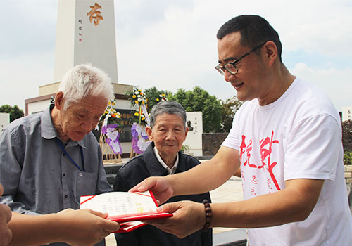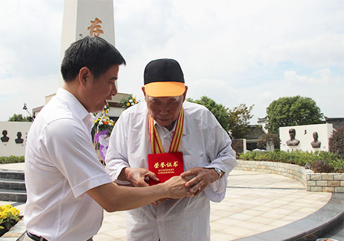 中國(guó)寧波網(wǎng)訊(實(shí)習(xí)記者潘楠希)9月18日上午10時(shí),“甬耀銀輝”——紀(jì)念抗戰(zhàn)勝利70周年“同泰杯”墓志銘征文活動(dòng)頒獎(jiǎng)儀式在同泰嘉陵·浙東抗戰(zhàn)老兵紀(jì)念園舉行,本次活動(dòng)由中共寧波市委老干部局主辦,寧波同泰嘉陵投資有限公司、寧波老年報(bào)、寧波市老干部活動(dòng)中心聯(lián)合承辦。市委組織部副部長(zhǎng)、老干部局局長(zhǎng)俞小勛,市委老干部局副局長(zhǎng)張建國(guó),市委老干部局活動(dòng)教育處處長(zhǎng)蘇金錐,寧波市“銀輝”志愿者聯(lián)合會(huì)秘書長(zhǎng)、市老干部詩(shī)詞協(xié)會(huì)會(huì)長(zhǎng)陳洪勛以及寧波詩(shī)協(xié)董景云,寧波康樂老年報(bào)副總編丁曉紅、市老干部活動(dòng)中心副主任戴慕軍等嘉賓出席本次活動(dòng)。