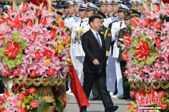 9月30日,烈士紀念日,向人民英雄敬獻花籃儀式在北京天安門廣場人民英雄紀念碑前舉行,習(xí)近平等黨和國家領(lǐng)導(dǎo)人出席儀式。 中新社記者 廖攀 攝