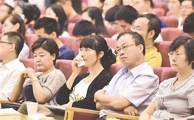 報告會上,聽眾們聆聽李保國同志的感人事跡。