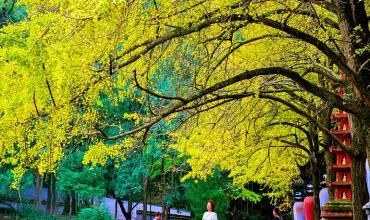 Golden ginkgo leaves light up Tian Tong Temple