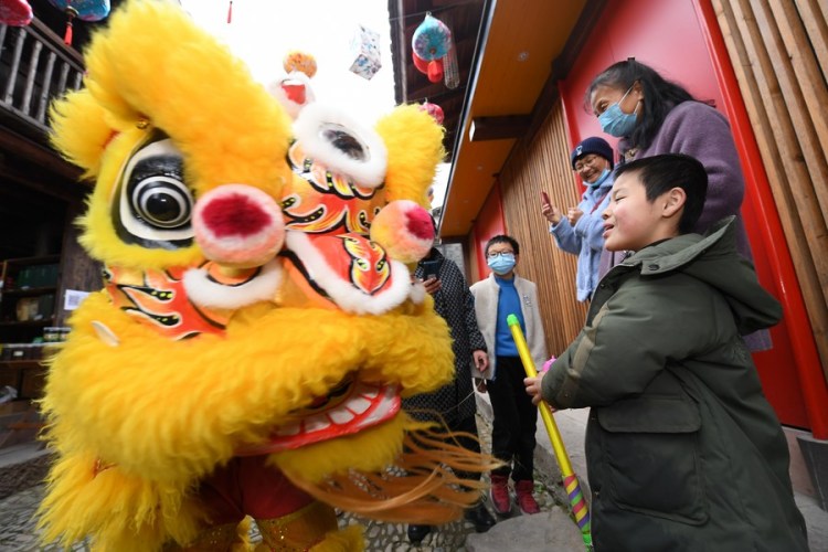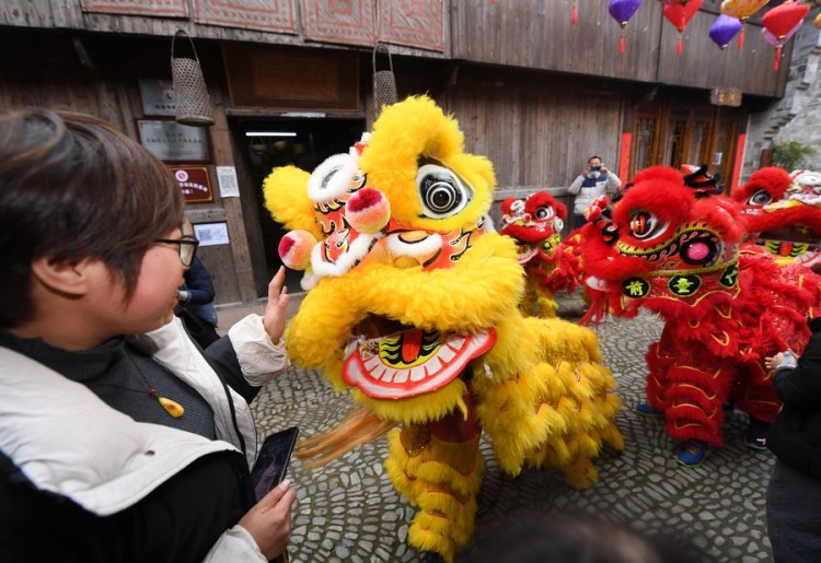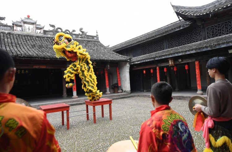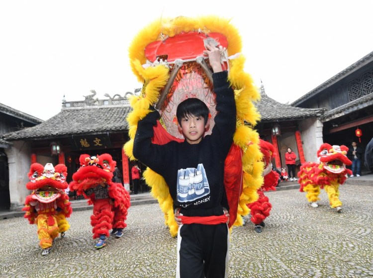 The lion dance is not only a sport but also a cultural tradition which has made the ancient town full of vitality.