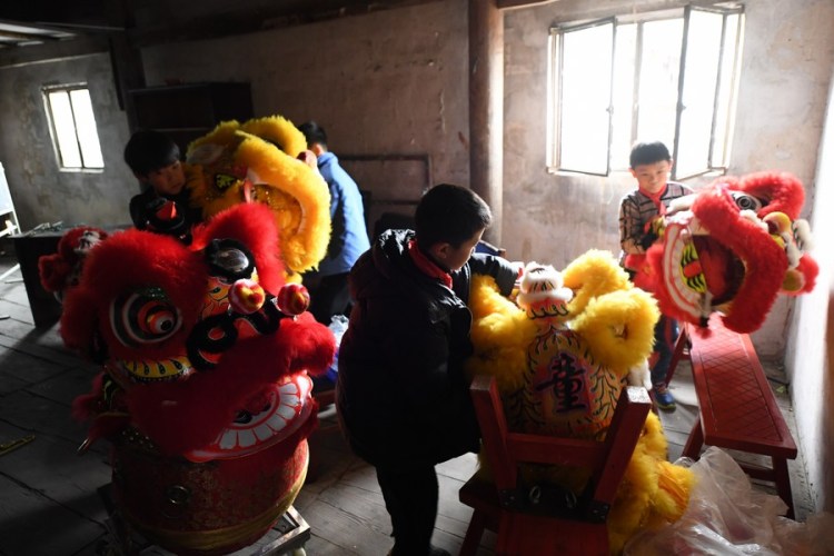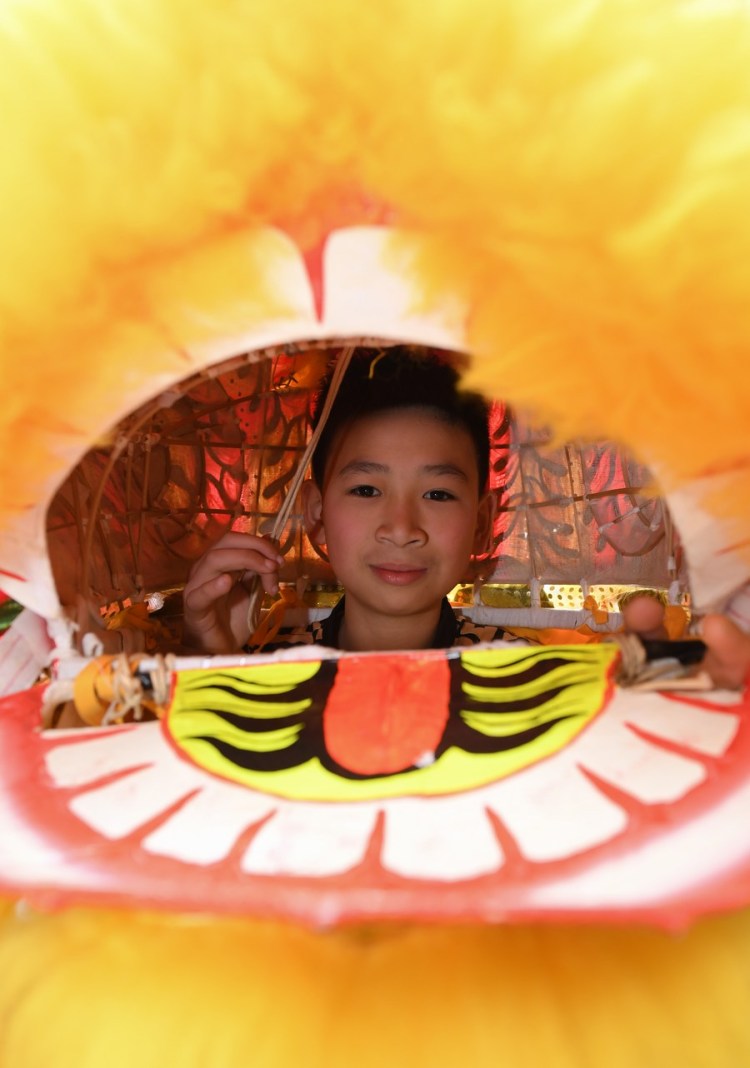 NINGHAI, Jan. 23 (Xinhua) -- Tong Panfeng is a lion dance enthusiast. At the age of 26, he quit his job to learn lion