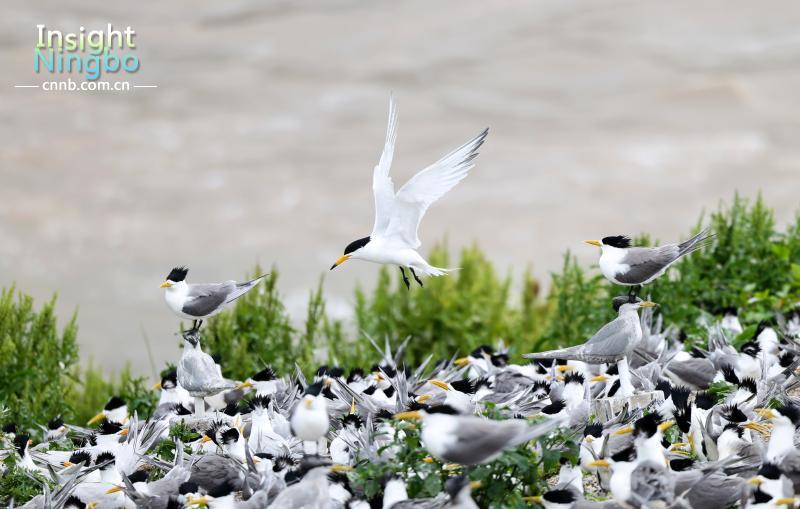 寧波象山,韭山列島國家級自然保護區(qū)一次性發(fā)現(xiàn)86只中華鳳頭燕鷗,創(chuàng)下全球觀測紀錄。徐能 攝