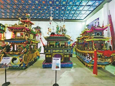 Most of the initial colourful boats were made of gauze, thin paper, bamboo and other materials, but now they are mostly made of wood and carved with dragons, phoenixes and dramatic characters, combining carpentry, carving and painting techniques.
